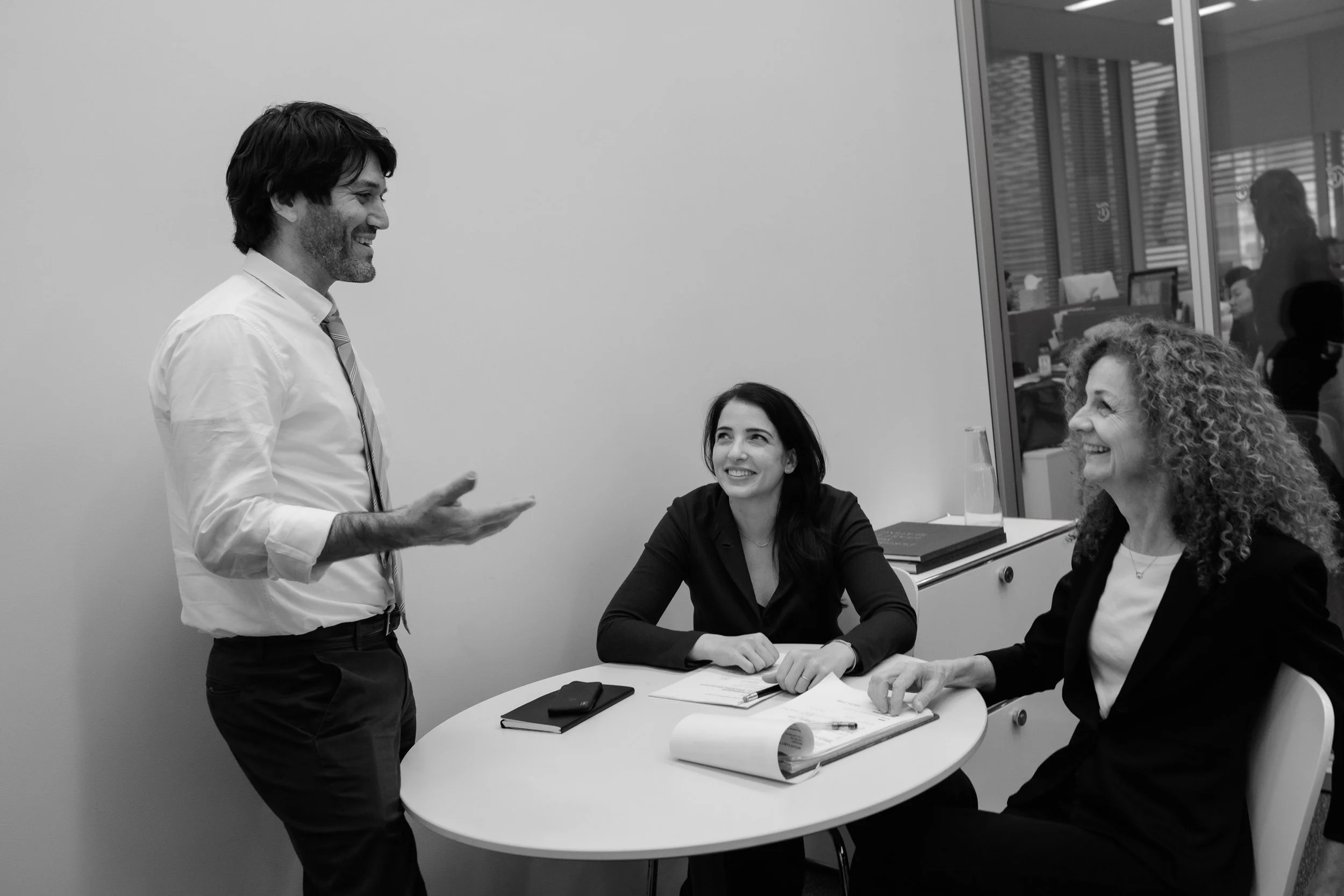 The New York Times Magazine braintrust: Editor-in-chief Jake Silverstein, Bichler, and the recently-retired director of photography, Kathy Ryan. (Photograph by David LaSpina)
