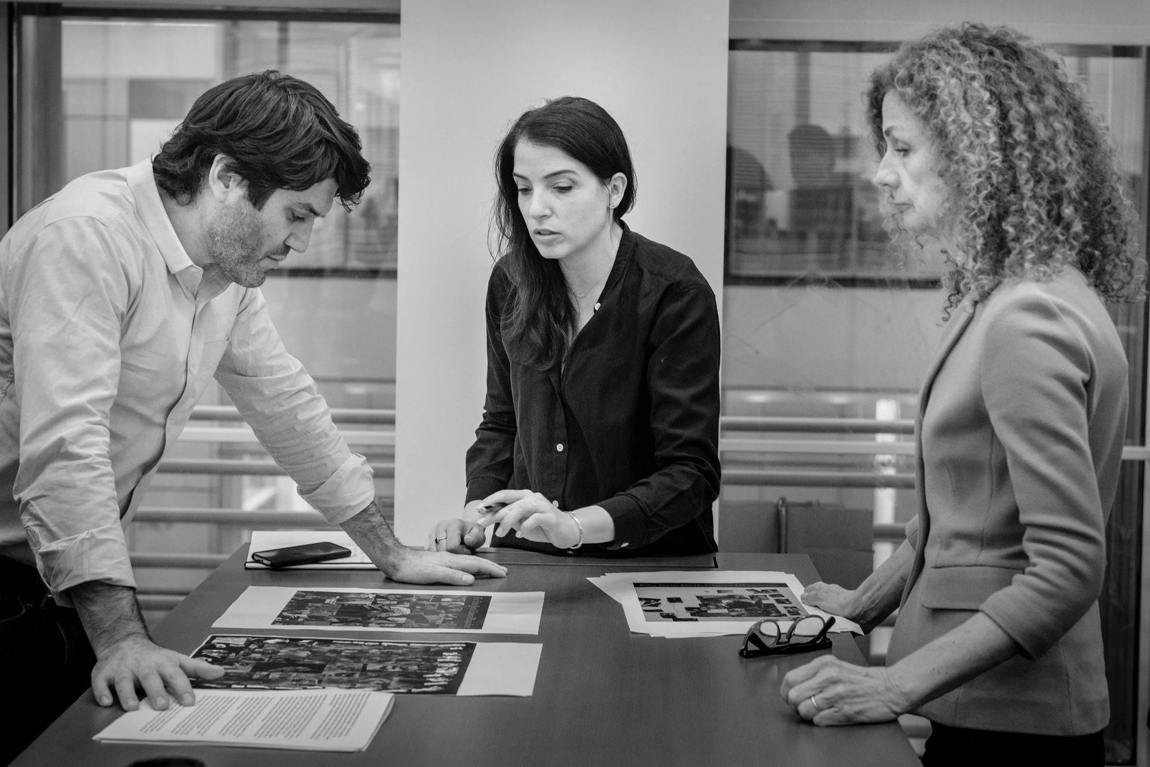 The New York Times Magazine braintrust (from left): editor Jake Silverstein, creative director Gail Bichler, and Ryan. (Photograph by David La Spina/Esto)