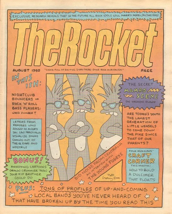 There weren’t a lot of good paying jobs in Seattle. It’s hard to imagine Seattle now—they have Microsoft and Adobe and Amazon. But back then, they didn’t, They had basically one job. And if you were an art director, there were no jobs. You had to make your own job. So The Rocket was us making our own jobs. And because so many of the people that started it were art directors, we had a rotating cast of art directors. Most of whom eventually moved to New York and did their own magazines.