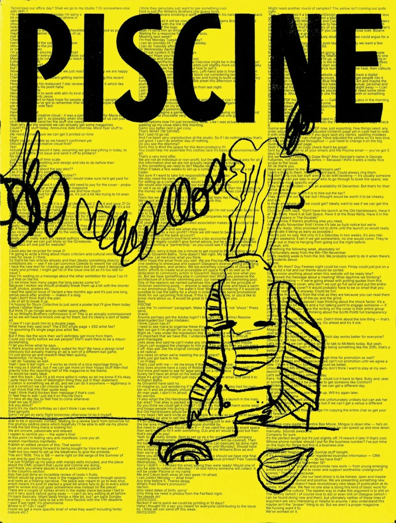 I went to their weddings. They came to my wedding. We’re still in touch now. When I ran the event, the guys from Piscine were there and they’d come down from Glasgow. Seeing them with each other was like I remember it was when we were making Little White Lies together and you are working with people who you, like, really respect and you really have a great time doing it together. And I think that’s still the thing. That’s the thing that I get excited about when I read it on the page and that’s what I want to share. While so much of the world has fundamentally changed in the last 20 years. I think that core thing, the thing that makes a piece of print interesting to me, is absolutely still the same.